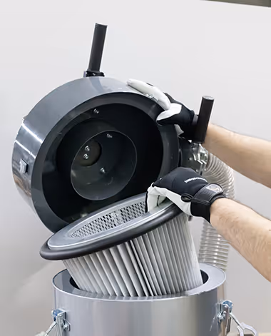 Lavina 25E vacuum; 1ph x 230V; 19.5Amps; 3.4hp/2.5kW; 386cfm; D63 (63mm/2.5in) x 10m/32ft antistatic main hose; Camlock; LONGOPAC; 1 Conical and 1 HEPA H13 filter; D50 (50mm/2in) hose and floor tool kit
